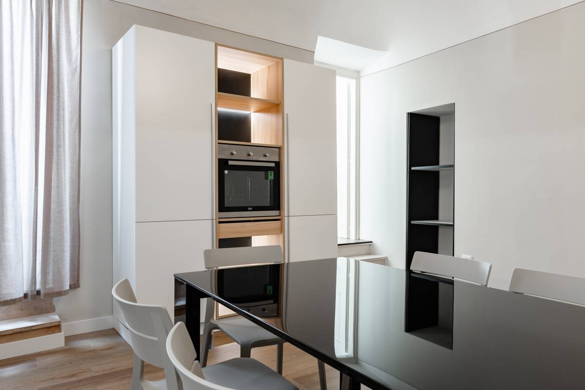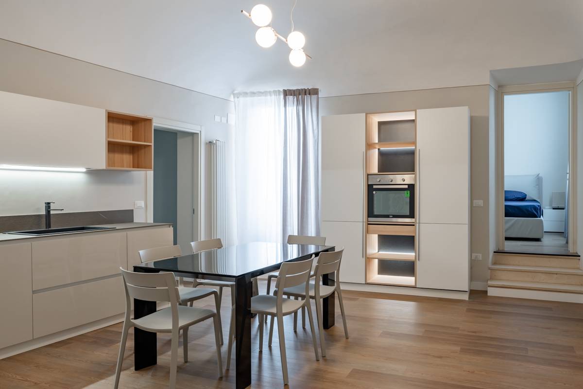 Chieti, centro storico, in piccolo stabile di sole tre unità abitative, non servito da ascensore, Appartamento completamente ristrutturato ed arredato con mobilia di pregio composto da ingresso, sala con camino, cucina abitabile, 2 camere da letto, doppi servizi, balconcino e terrazzo. Si considerano solo locazioni transitorie per esigenze lavorative o di studio - si richiedono referenze - info e visite previo telefono 0871.396451